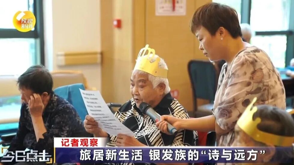 在漢中市一家養老機構內,工作人員為一些老人慶生準備了一場活動,老人們參與其中唱歌、聊天,還有老人拿著手機拍攝照片、視頻,記錄著這美好的一刻。